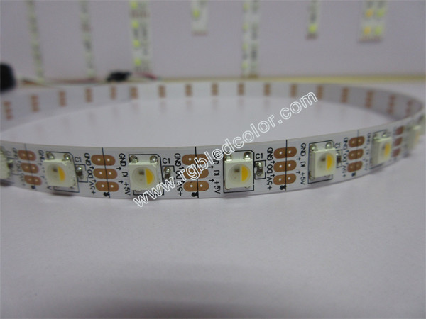 SK6812RGBW is a new type of built-in ic RGBW 4in1 led strips,the ic is 4channel sk6812rgbw ic,the led is R,G,B,W four color chips packaged with sk6812rgbw ic inside 5050 smd led.It is addressable rgbw strips with digital ic control,can be programmable controlled ,so it is digital rgbw ,which not only have the digital rgb led strip`s function,but also you can achieve the digital pure white color water running effect,breathing,dimming,color chasing and so on.
